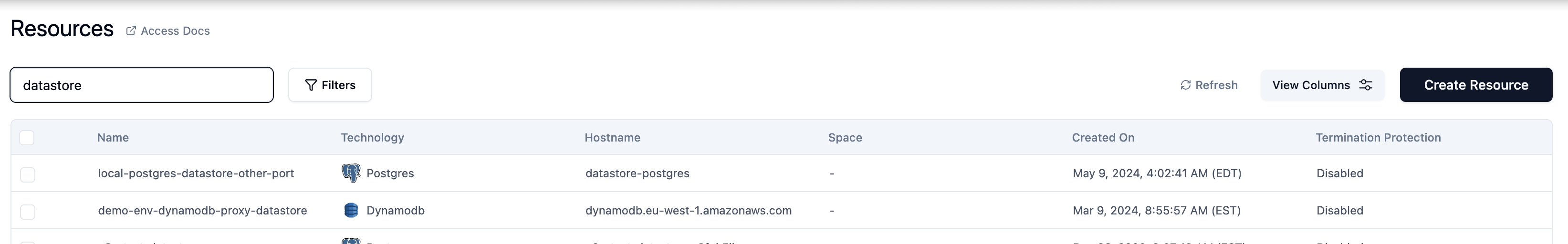 - Navigate to the Resources app. In the list of Resources, click on the arrow at the end of the row corresponding to the desired Resource to which you wish to create a native user.