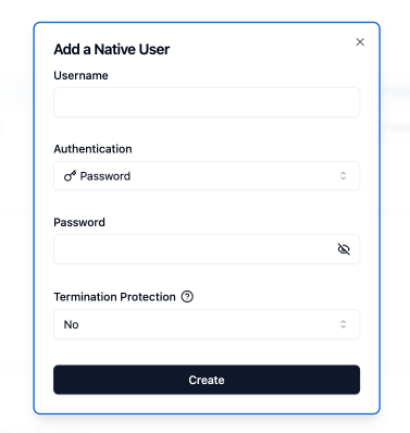 - Complete the form by entering the username and password for the native user role.